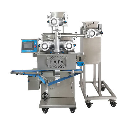 La macchina per incapsulamento a quattro tramogge P188 è progettata per la produzione alimentare avanzata. Può gestire contemporaneamente un impasto esterno e fino a tre ripieni diversi, consentendo la creazione di prodotti multistrato come mai prima d'ora.