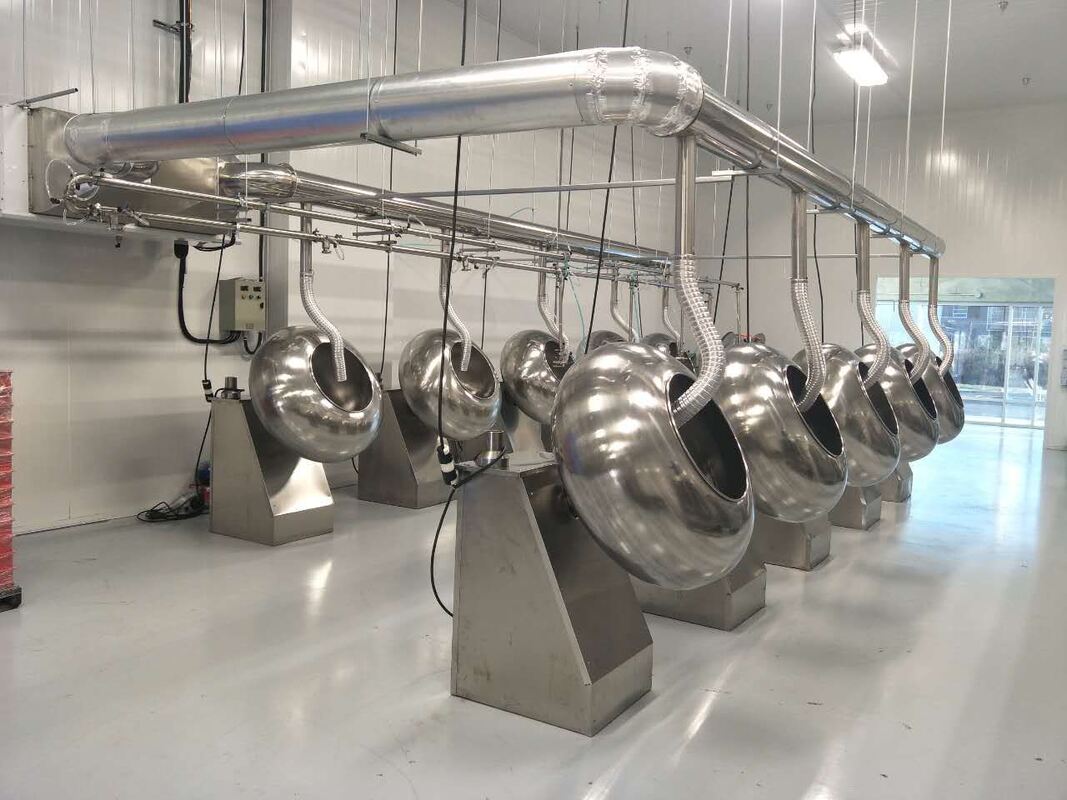 Macchina per la confettatura del cioccolato con sistema di spruzzatura