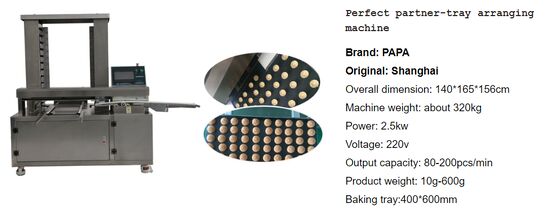 una linea di produzione completa di cracker costituita da:Shanghai Papa Machine P307 macchina da plasmare, tagliatrice di ghigliottina e panning machine, che si svolge in un ambiente di produzione reale.