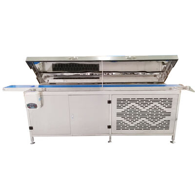 La macchina per la copertura di cioccolato con tunnel di raffreddamento commerciale per piccole produzioni è composta da una piccola macchina per la copertura di cioccolato e un tunnel di raffreddamento per cioccolato da 3P. La macchina per la copertura di cioccolato di tipo commerciale con tunnel di raffreddamento è progettata per la produzione di prodotti ricoperti di cioccolato, come barrette proteiche, barrette energetiche, barrette di cereali, barrette di granola, palline energetiche, palline di datteri, tartufi, biscotti, cracker, torte, dolci, pane, bastoncini di wafer, rotoli d'uovo, frutta, noci, barrette di cioccolato, ciambelle e così via.